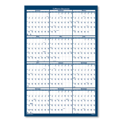 Recycled Poster Style Reversible/erasable Yearly Wall Calendar, 24 X 37, White/blue/gray Sheets, 12-month (jan To Dec): 2023