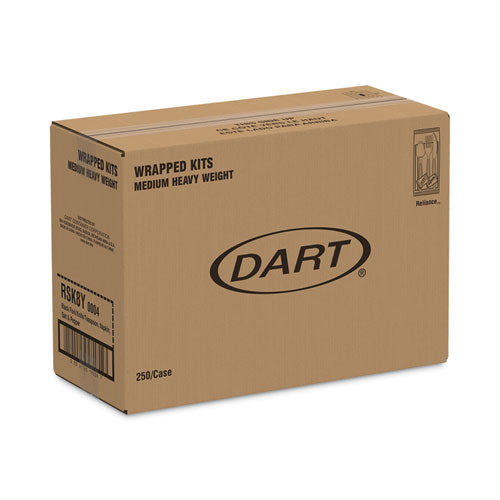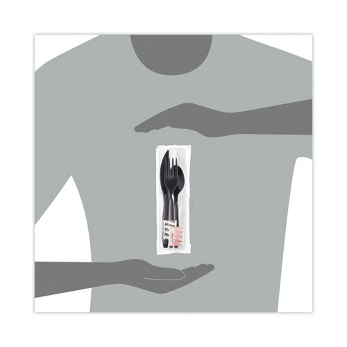 Reliance Mediumweight Cutlery Kit, Knife/fork/spoon/salt/pepper/napkin, Black, 250 Kits/carton