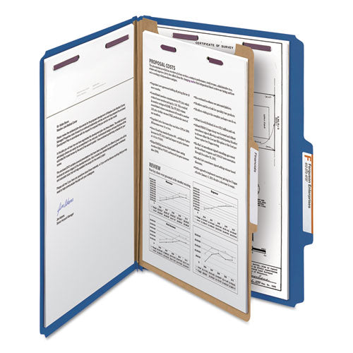 Six-section Pressboard Top Tab Classification Folders, Six Safeshield Fasteners, 2 Dividers, Legal Size, Blue, 10/box