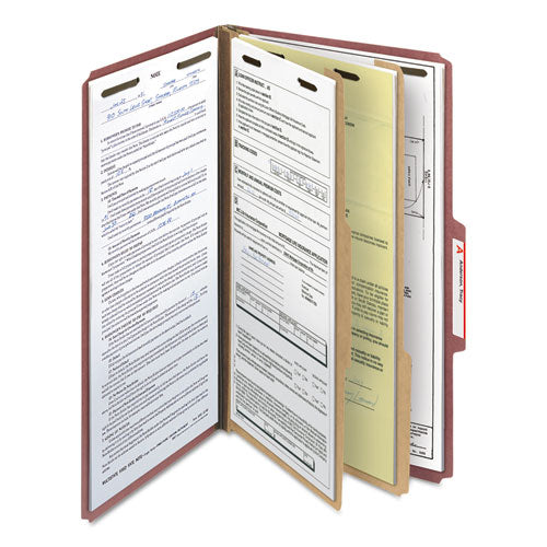 Six-section Pressboard Top Tab Classification Folders, Six Safeshield Fasteners, 2 Dividers, Legal Size, Bright Red, 10/box