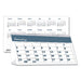 Stand-alone monthly desk-top tent calendar is perfect where desk-space is limited. Full-year reference calendar on the back side of each page. Spiral-bound at the top, just flip to view other months. Bar Harbor neutral graphics match any décor. Made entirely of recycled materials.