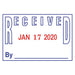 Combine a word and date to make a real impression. Four-band date; months, days and five-year band. Plastic frame. Includes cartridge-style two-color (blue and red) ink pad. Type size 1 1/2.