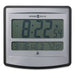 Injection-molded, radio-controlled digital wall clock has a two-tone finish of charcoal gray and metallic silver. The radio-controlled clock sets automatically and adjusts for Daylight Savings Time. Large 2.25" numerals display the time. Choice of 12- or 24-hour time format display. Displays the month, date, day of the week, and indoor temperature in Fahrenheit or Celsius. Folding stand for tabletop use. Quartz, battery-operated, radio-controlled clock with alarm requires two AA batteries (not included).