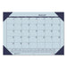 Unique, compact size is perfect for smaller workspaces. Strong, color-matched, reinforced leatherette corners complement the pad's paper color while keeping pages in place and protected. Full-year reference calendar aids in planning throughout the year. Lightly ruled daily blocks help keep notations neat. Made entirely of recycled materials.