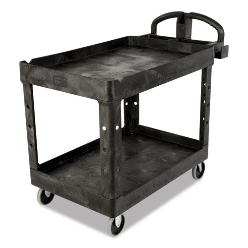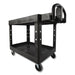 Heavy-duty Utility Cart With Lipped Shelves, Plastic, 2 Shelves, 750 Lb Capacity, 26" X 55" X 33.25", Black