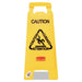 The Rubbermaid Commercial 2-Sided Caution Safety Sign is lightweight and versatile. The caution sign features the universal wet floor symbol and the word “caution” imprinted in English, French and Spanish for effective communication to broad audiences. The 25-inch model is suitable for use in a variety of locations, including narrow areas. The folding design allows for convenient storage or transport on a janitor cart. Each of the safety signs features durable plastic construction that will not rust, corrode, or fade. The 2-sided, bright yellow design meets OSHA requirements. ANSI compliant multi-lingual graphics warn of a nearby hazardous area. The flexible locking-style hanger makes the sign stationary and easily visible from all directions. Measures 12" deep when open.